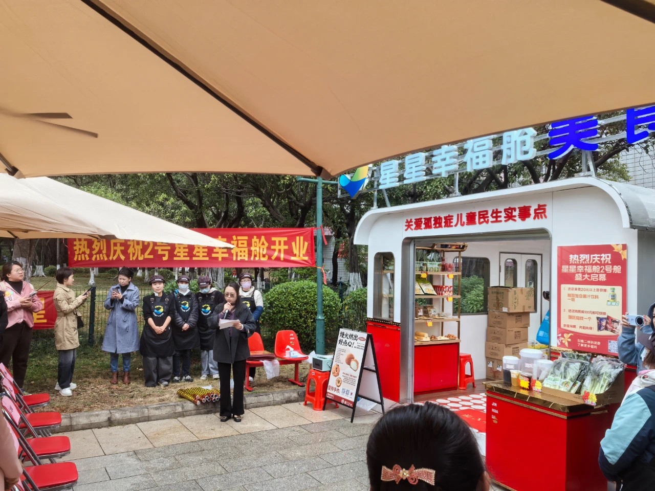 为解决家庭收入困难,花都区推出全国首台“星星幸福舱”流动公益售卖车,联动政企社提供免费培训及场地支持,首舱落地即吸纳10名“星星妈妈”上岗。采用“以商养善”机制售卖岭南美食,设置“捐1元赠水”二维码,实现公益商业良性循环。现有2台“幸福舱”助力30名“星星妈妈”实现家门口灵活就业,月收入从零增至3000元左右。